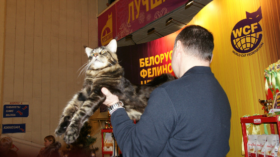 Вторая оценка CAGCE получена в г. Сергиевом Посаде, на Международной выставке кошек «РосКошная осень в Посаде», в ТЦ «Счастливая 7Я», 15 октября 2011 у Надежды Румянцевой. Закрыли титул Большого Европейского Чемпиона WCF в Беларуси, в г. Минске, на Международной выставке кошек «Лучшая кошка Беларуси 2011», в Республиканском Дворце молодежи, 3 декабря 2011, получив Ex.1 от С.Chisi. Свою первую ступенечку к высочайшему титулу Чемпион Мира WCF Артур сделал там же, в Минске, очень красиво! Best in Breed, Nom Bis, Color tabby show – 6, WCF ринг – 10 место.