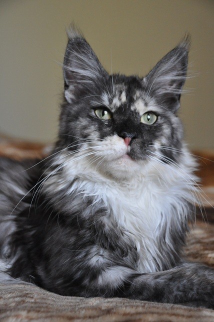 Эту кошку мы ждали год! Долгие переговоры, мечты, переживания!!! Не забуду тот момент, когда, позвонив в очередной раз в Ангарск, услышала от заводчицы, Оксаны Абдулхаковой: "Света, для тебя родилась девочка!" И какая! Думаю, что долгое ожидание того стоило. Мы мечтали именно о такой: в превосходном современном типе, с крупным, длинным телом, с необыкновенно породной головой, замечательной коробочкой, высоченными ушами, бесконечным хвостом!!! А окрас: необыкновенной красоты черная солидная черепаха с белоснежным воротничком, в беленьких носочках. Потрясающим образом перемешаны цвета по корпусу: черный, красный, белый!!! А изумрудные глаза!!! Невозможно оторвать взгляд. Кошка - мечта!!! Оксана, огромное спасибо, что доверила это ЧУДО, это СОКРОВИЩЕ!!!